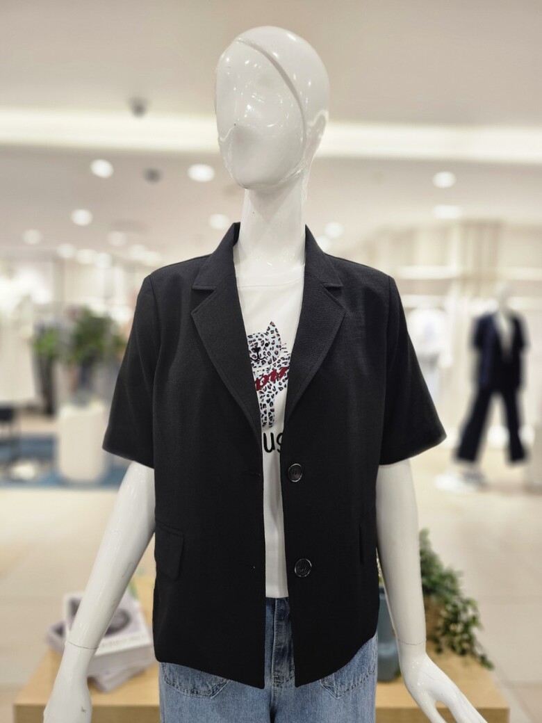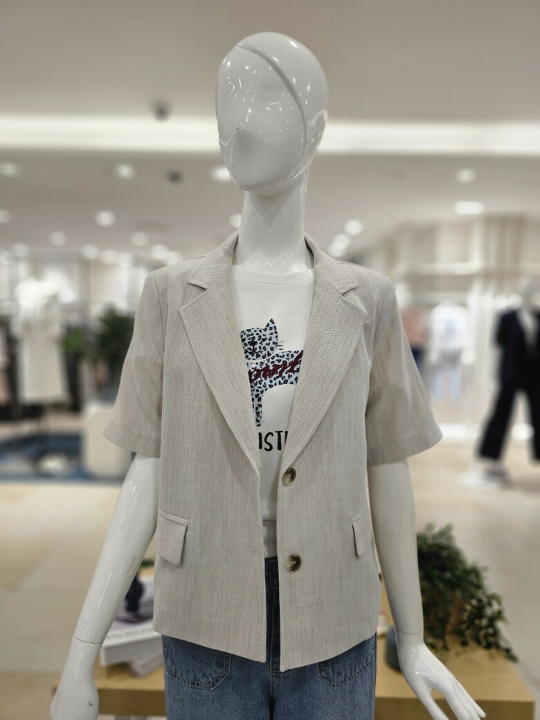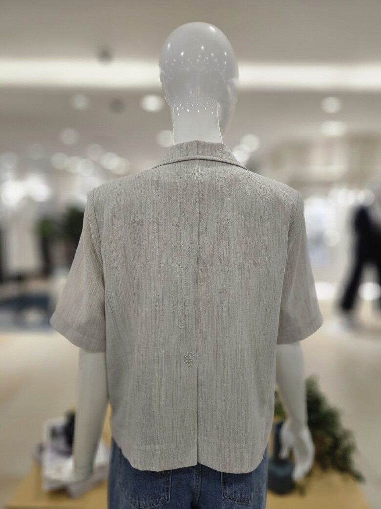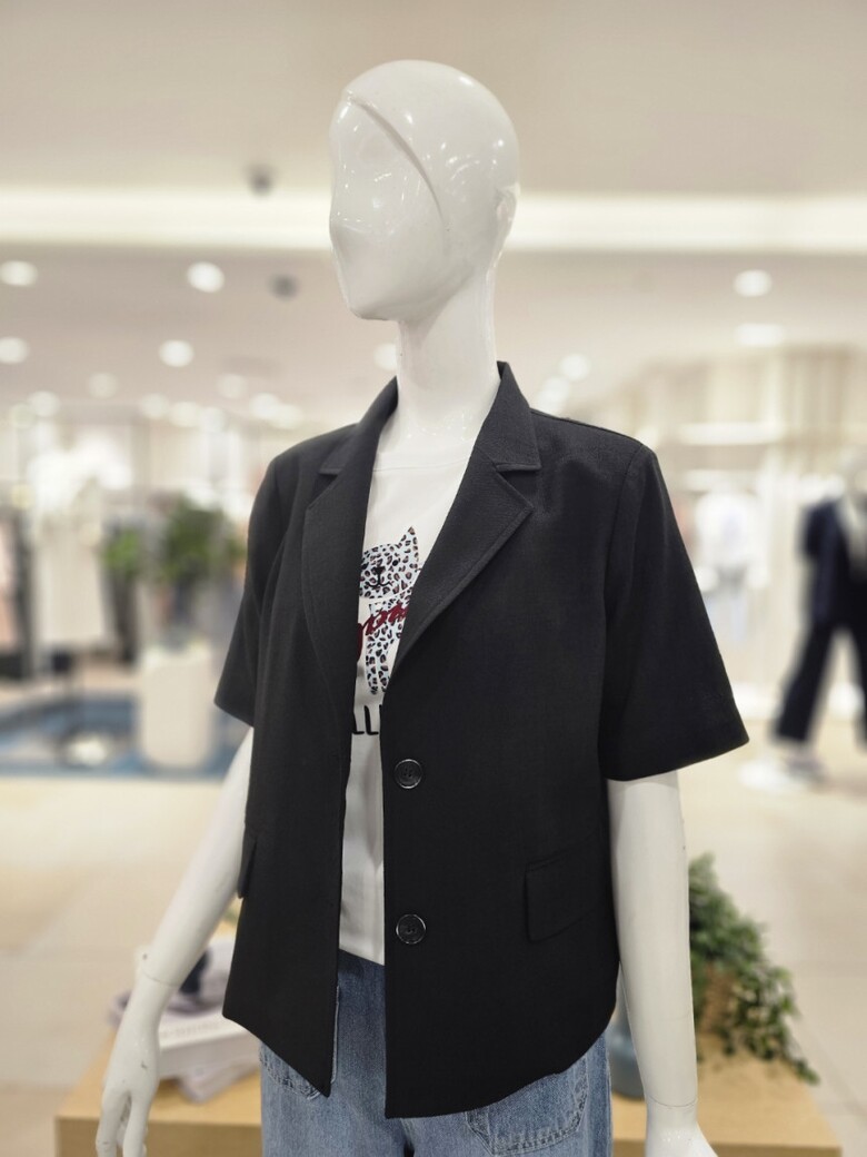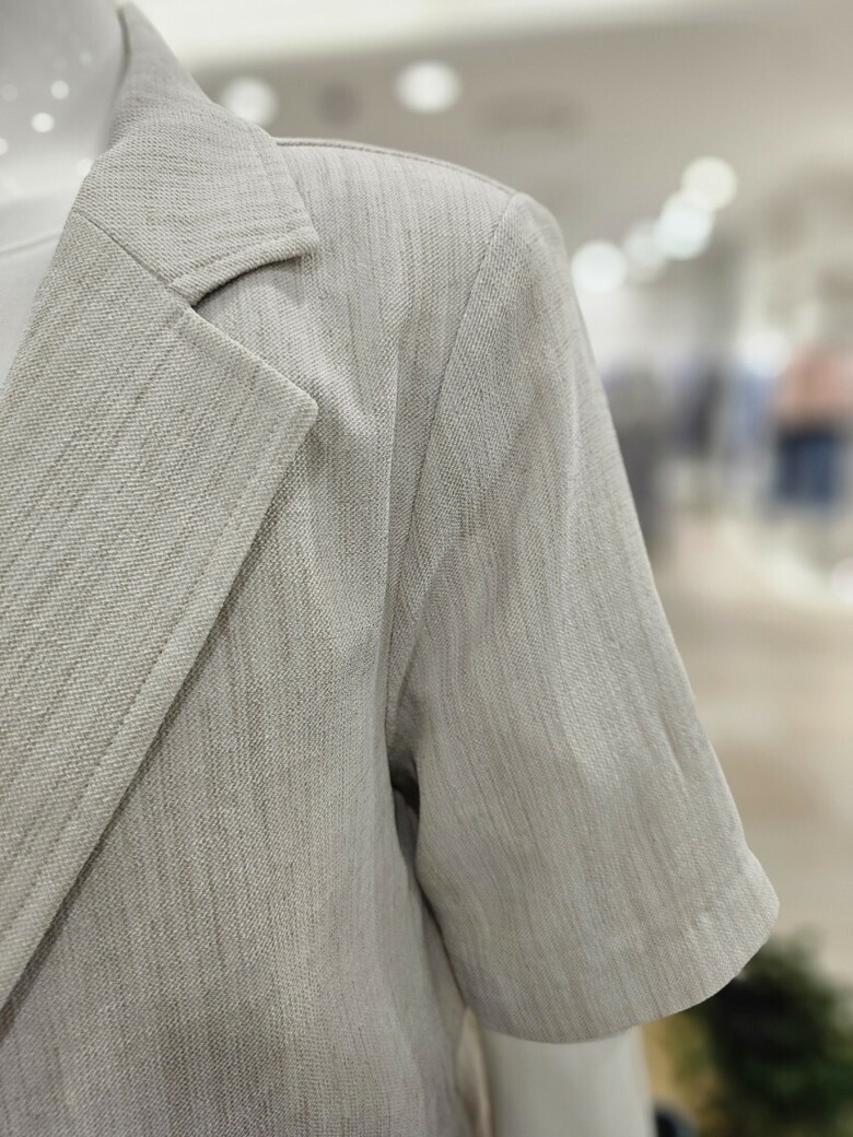 부드러운 터치감의 고급 폴리에스테르 소재 함유로 만들어진 반소매 자켓입니다.