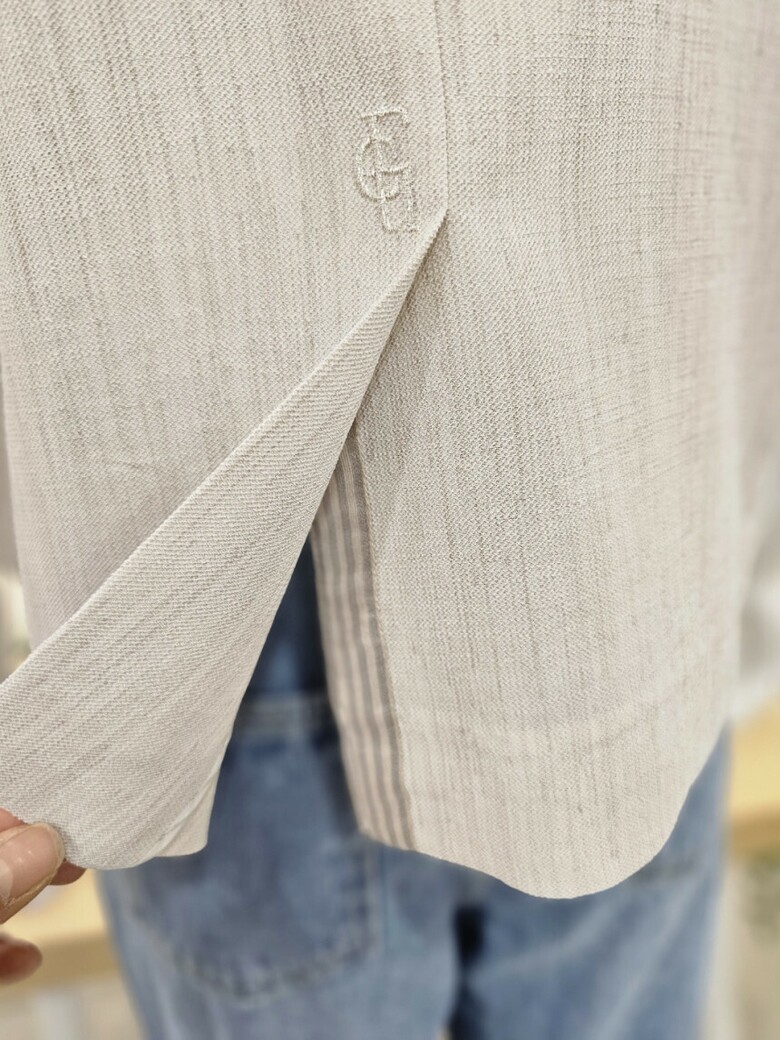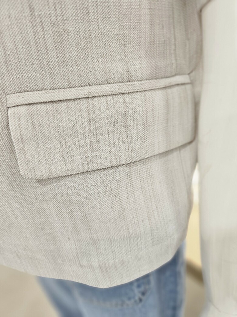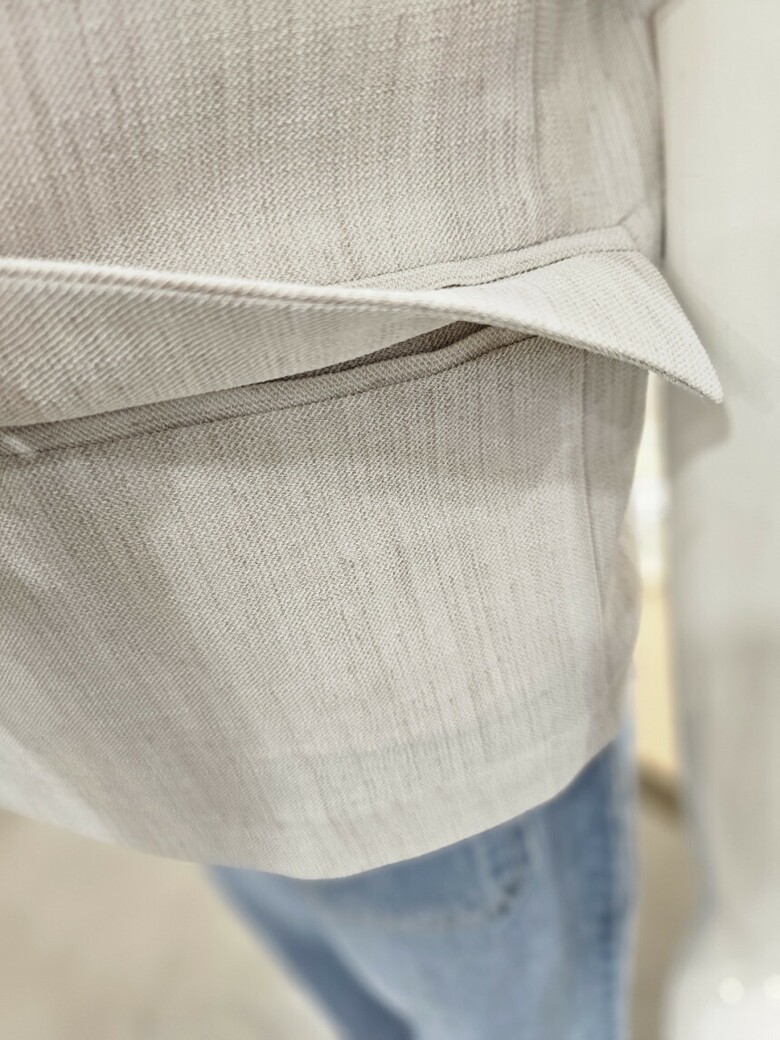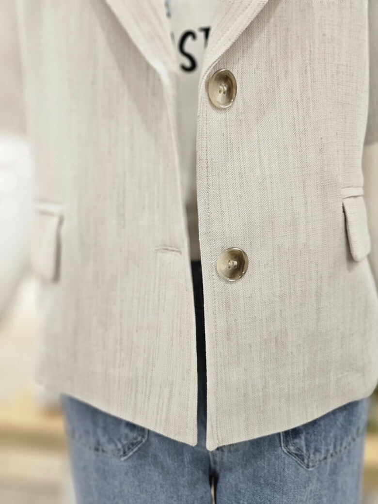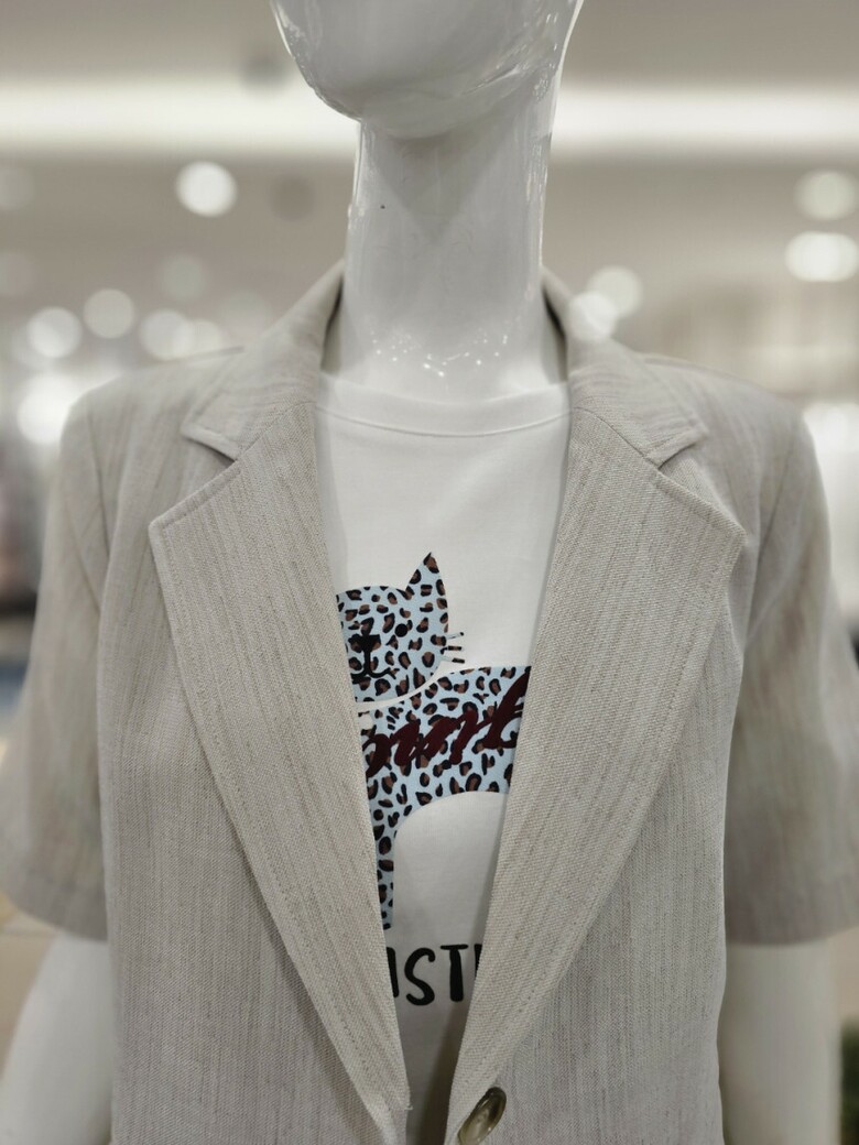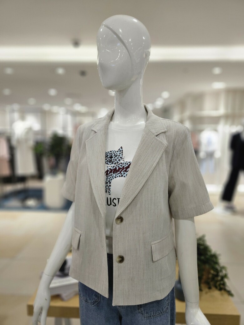 부드러운 터치감의 고급 폴리에스테르 소재 함유로 만들어진 반소매 자켓입니다.