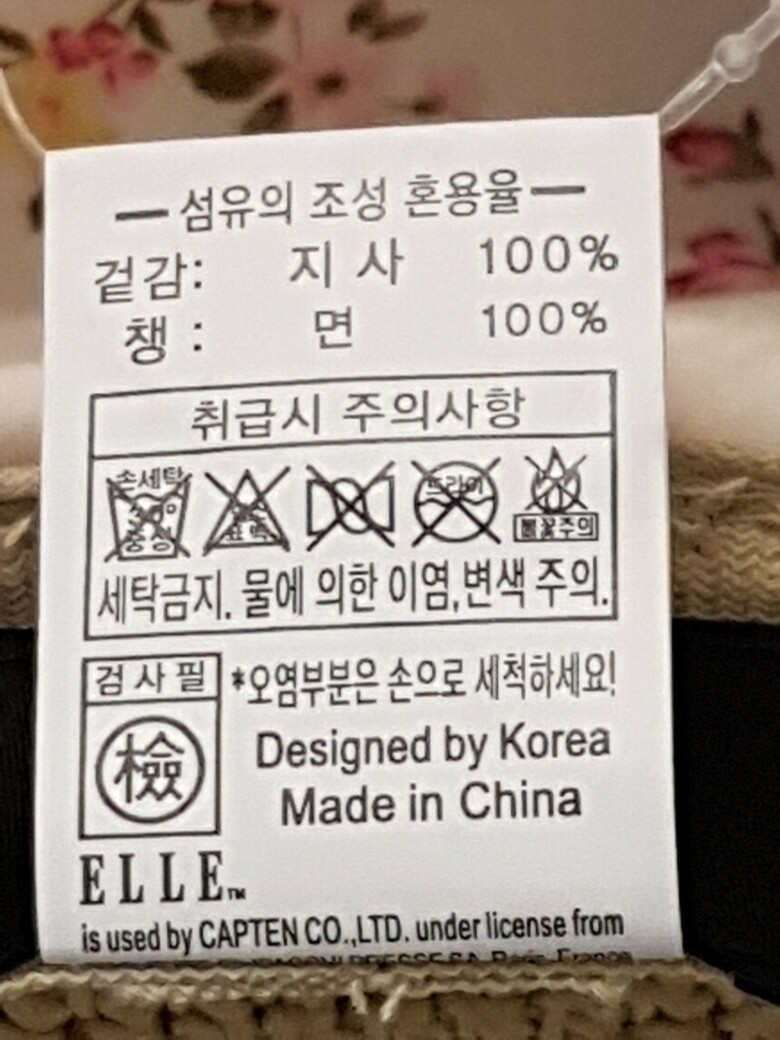 | 2. 소재 | 겉감:지사 100%, 면 100% |
