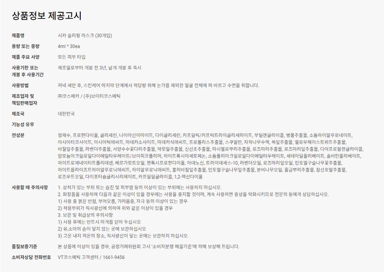 | 8. 기능성 화장품의 경우 화장품법에 따른 식품의약품안전청 심사 필 유무 | 상세이미지 참조 |