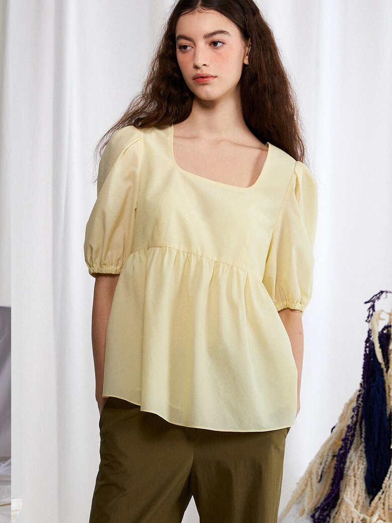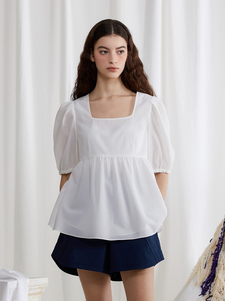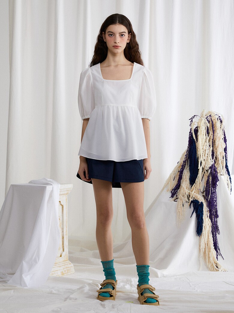 CC collect. 스퀘어넥 벌룬 슬리브 블라우스_C232MSC709