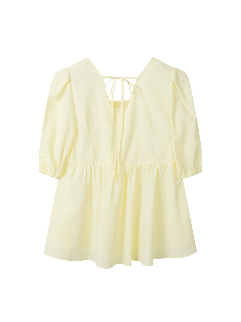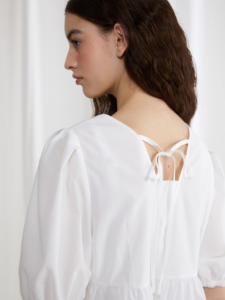 - 벌룬 슬리브와 네크라인의 리본 디테일이 페미닌한 무드를 자아내는 아이템으로|*|