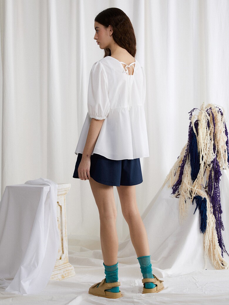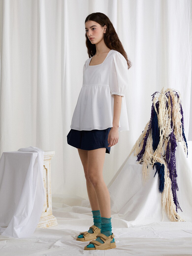 - 스퀘어넥의 트라페즈라인 블라우스입니다.