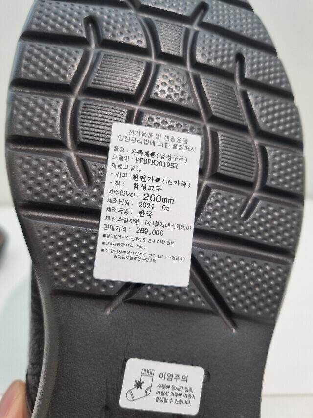 | 1. 제품 소재 (운동화인 경우에는 겉감, 안감을 구분하여 표시) | 소가죽 |