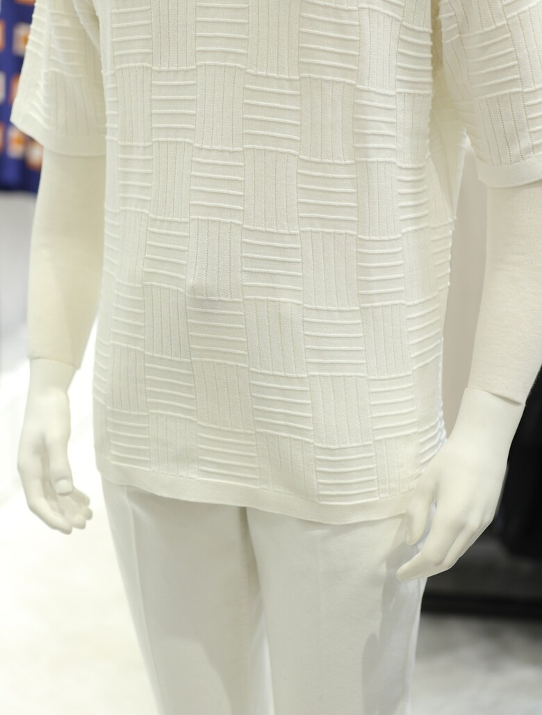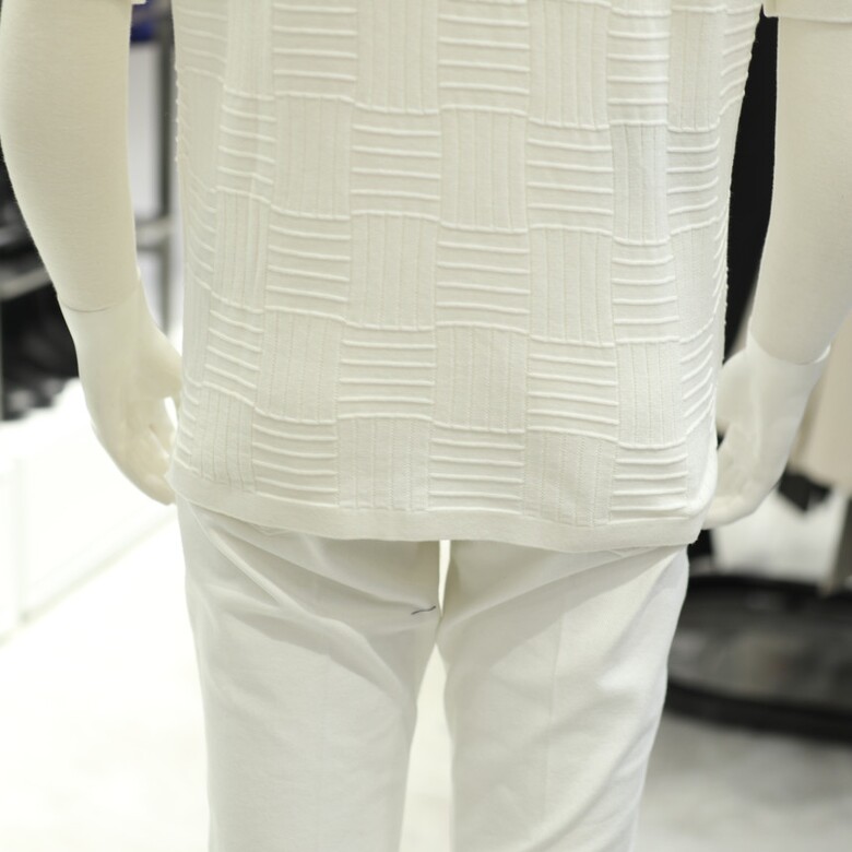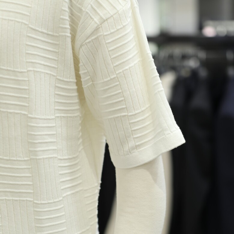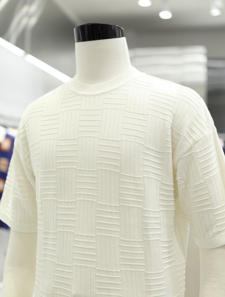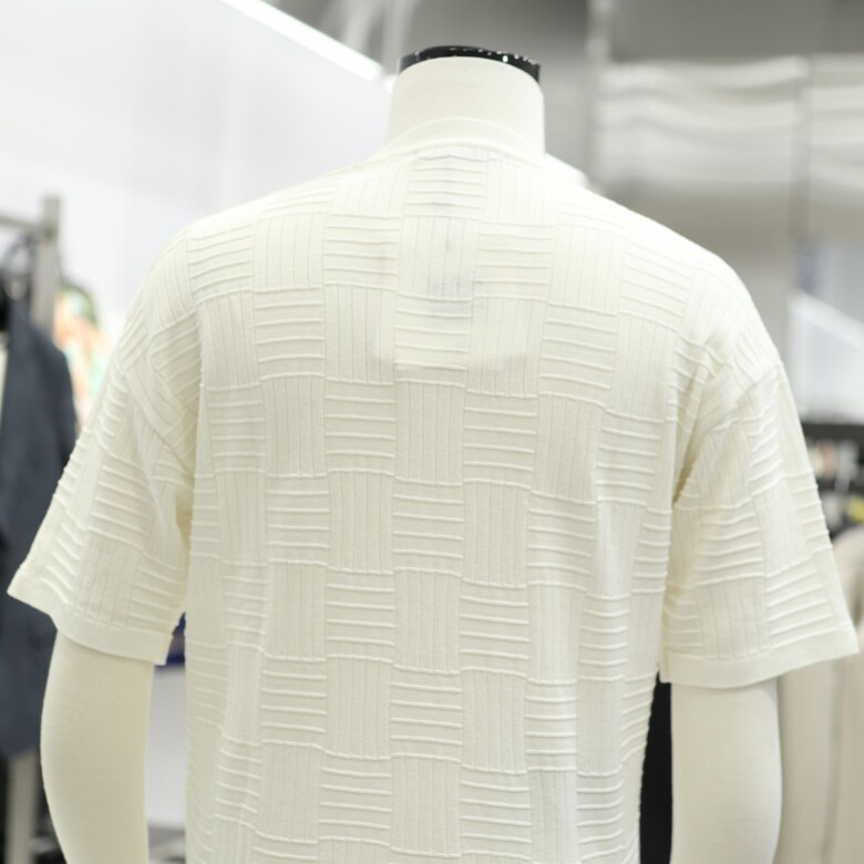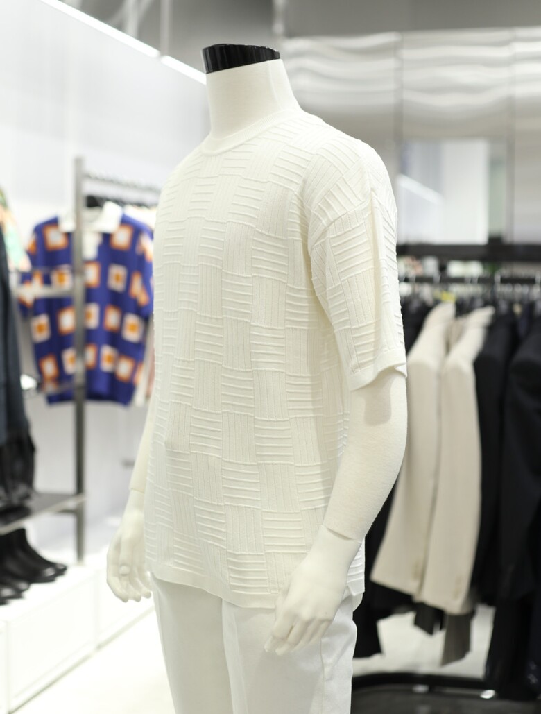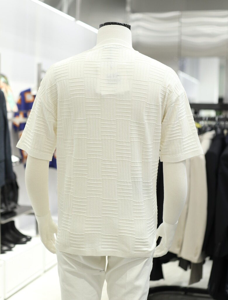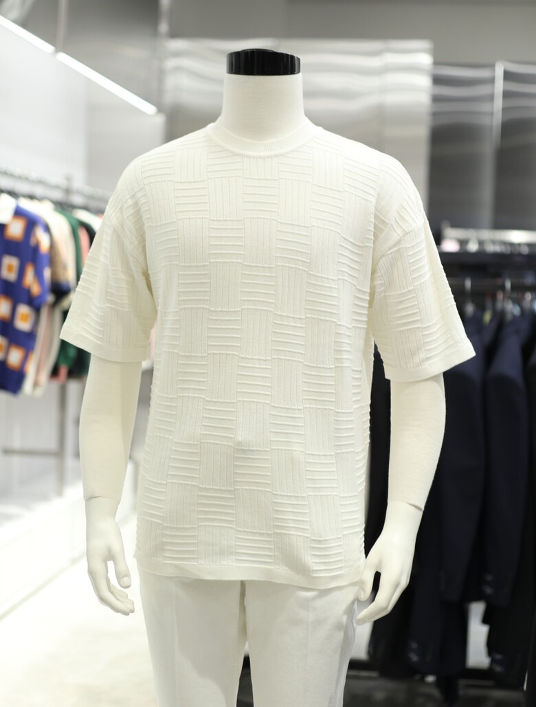 [가넷옴므] 화이트 세미오버핏 스퀘어 짜임 반팔 니트 GBS37203