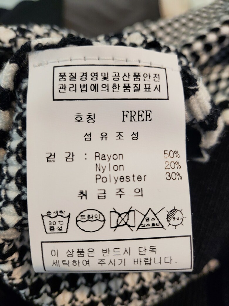 | 1. 제품 소재 (섬유의 조성 또는 혼용률을 백분율로 표시, 기능성인 경우 성적서 또는 허가서) | 겉감:아크릴60% 레이온40% |