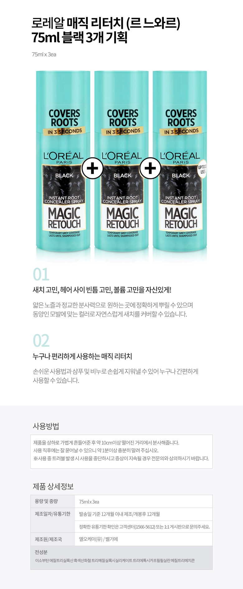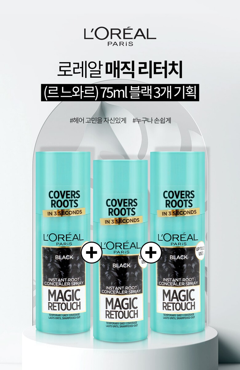 로레알 매직 리터치 새치커버 스프레이 염색약 / 블랙(3개)