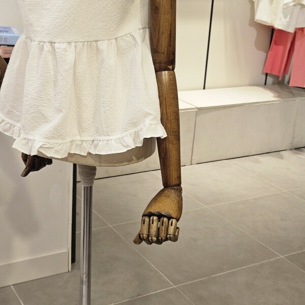 (예시1. 프릴의 좌우가 맞지않는다 예시2. 프린트,나염,워싱이 동일하지 않는다)