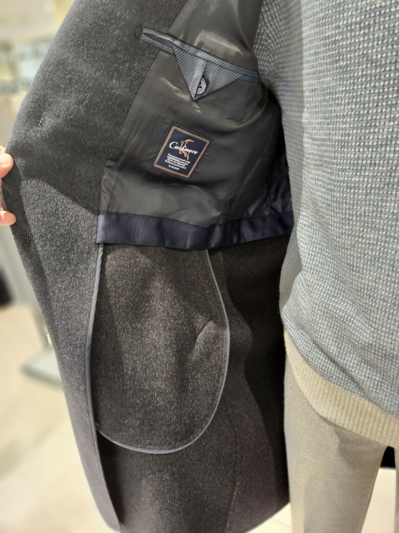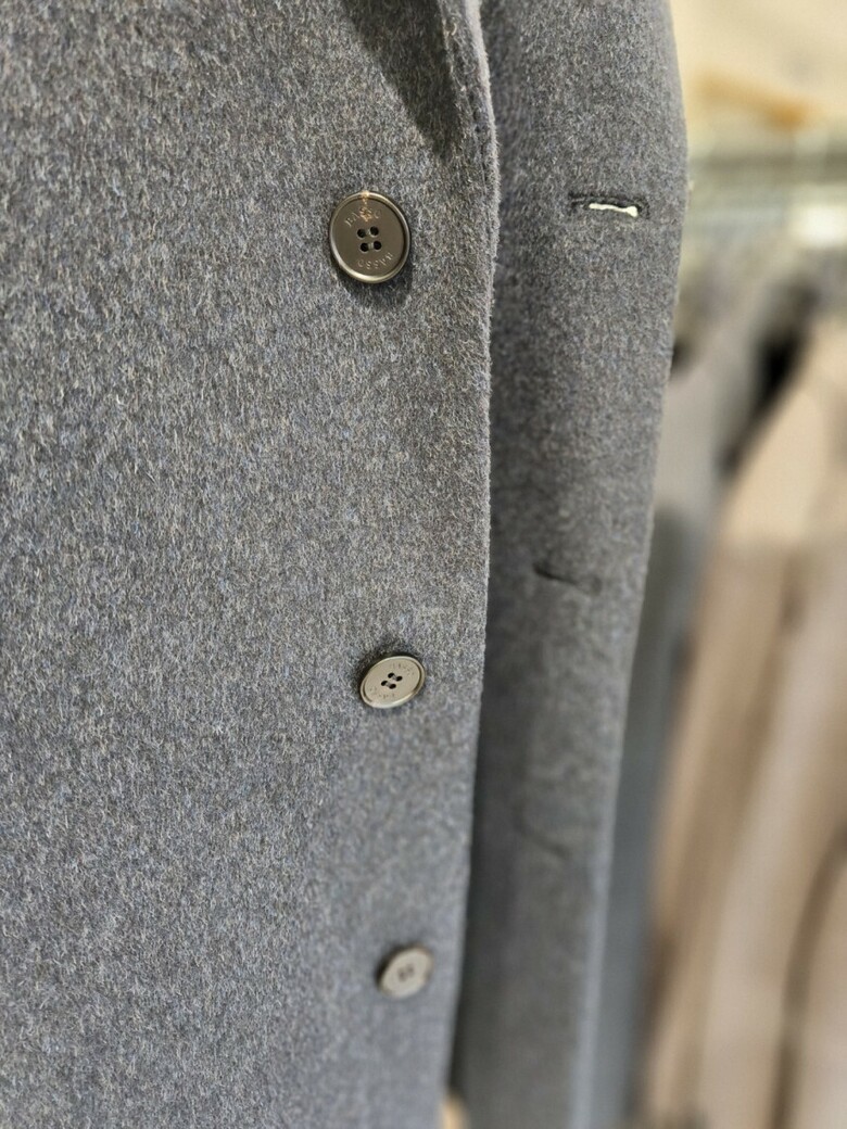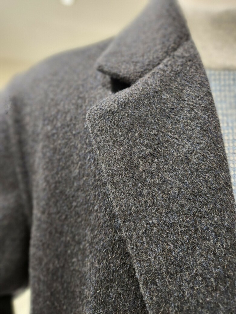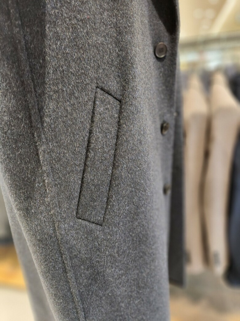 캐시미어와 모 혼방으로 깨끗한 느낌과 실루엣이 좋은 방모 코트 입니다.