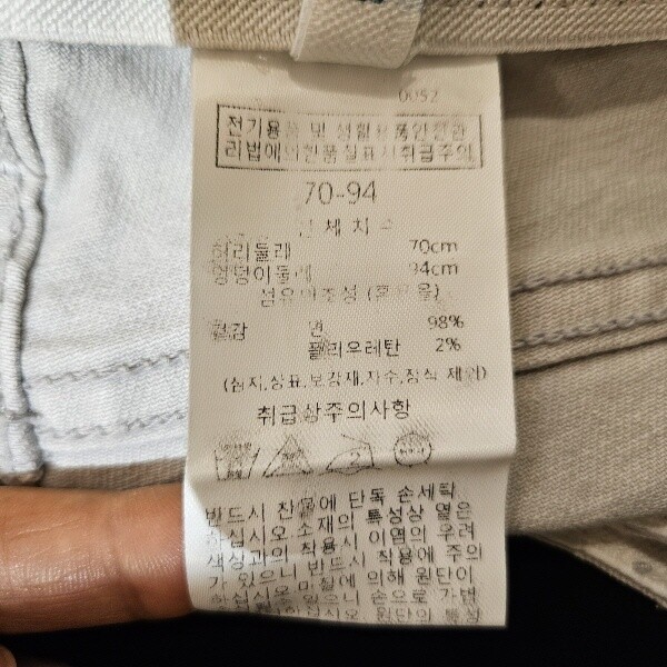 제품소재 : 겉감 - 면98%, 폴리우레탄2%