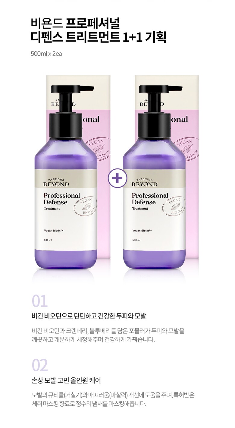 비욘드 프로페셔널 디펜스 트리트먼트 500mlx2 비건 손상케어