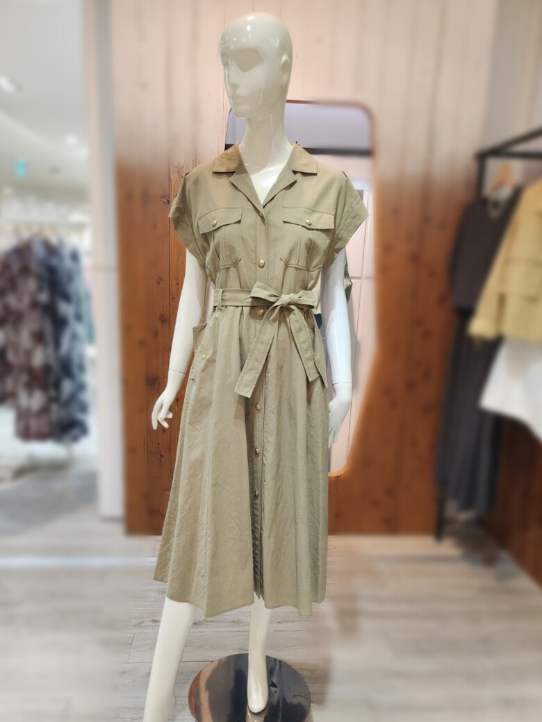 [지컷] 벨티드 스냅 버튼업 원피스( 7213337102)
