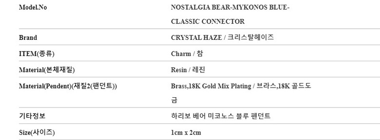 크리스탈헤이즈 노스텔지아 하리보 베어 미코노스 블루 펜던트 여성참 당일발송