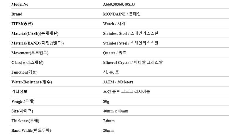 | 7-2. 시계 - 기능, 방수 등 | 상세정보참조 |
