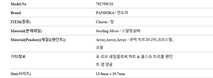 판도라 참 792755C01 포 리프 네잎클로버 하트 &amp