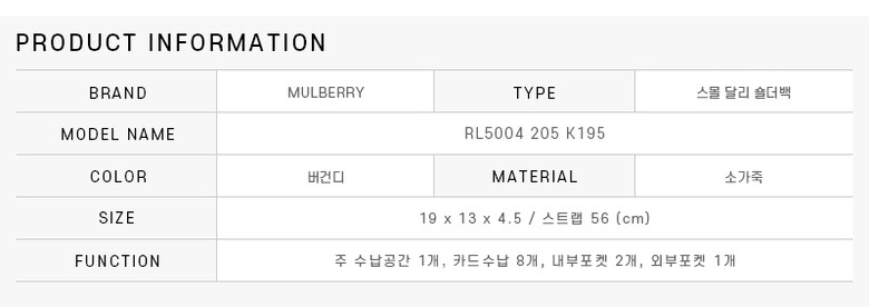 멀버리 숄더백 RL5004 205 K195 달리 스몰 버건디 여성숄더백 당일발송