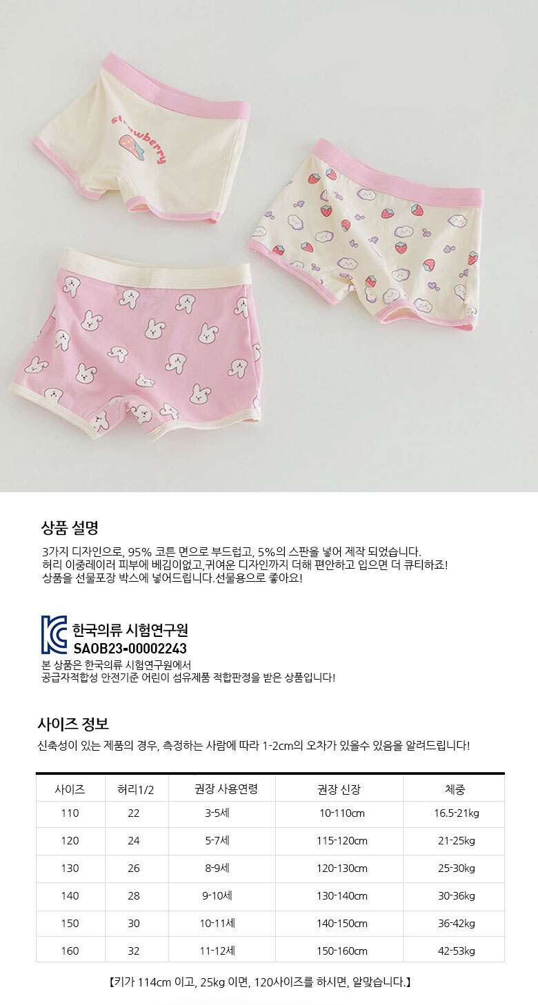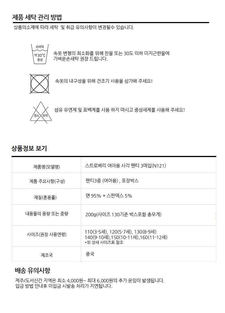 스트로베리 여아 사각팬티 3매(N121)+선물포장