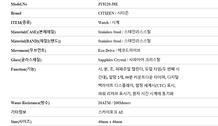 | 7-2. 시계 - 기능, 방수 등 | WATER RESISTANCE - 20ATM(200Meters) |