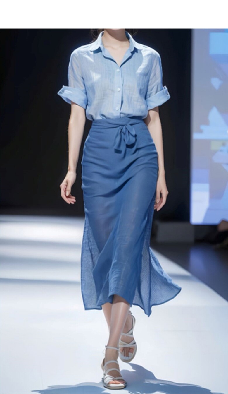 알레 블루 린넨 셔츠 앤 스커트 투피스 세트_240626_LC03
