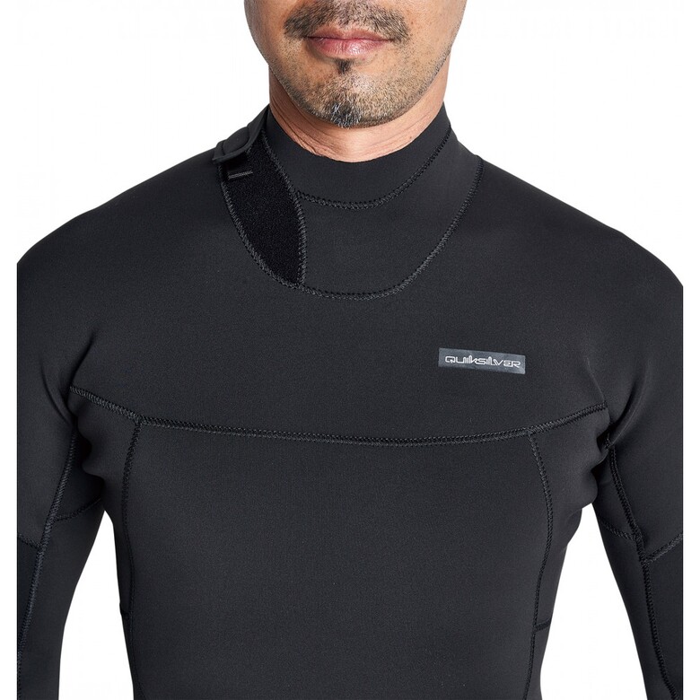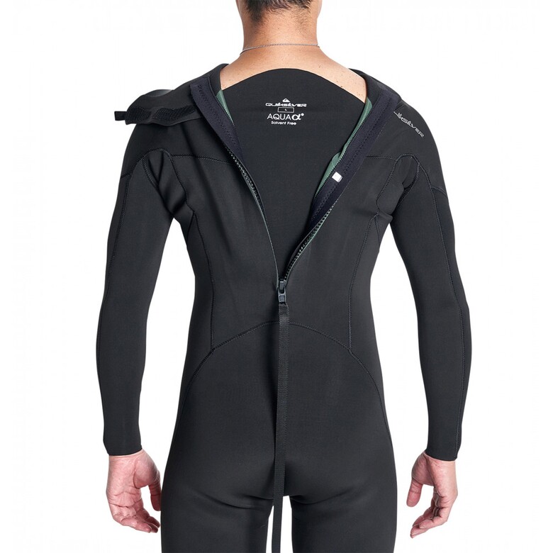 후면 등에 지퍼가 있는 스타일로 목 부분의 피부에 지퍼가 닿지 않도록 네오프렌 소재가 감싸 조정 가능하도록 디자인 됨
