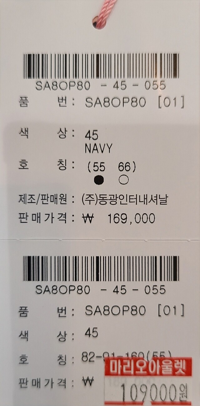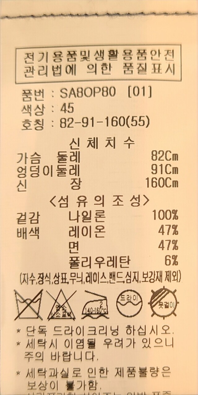 | 6. 세탁방법 및 취급시 주의사항 | 상품상세참조 |