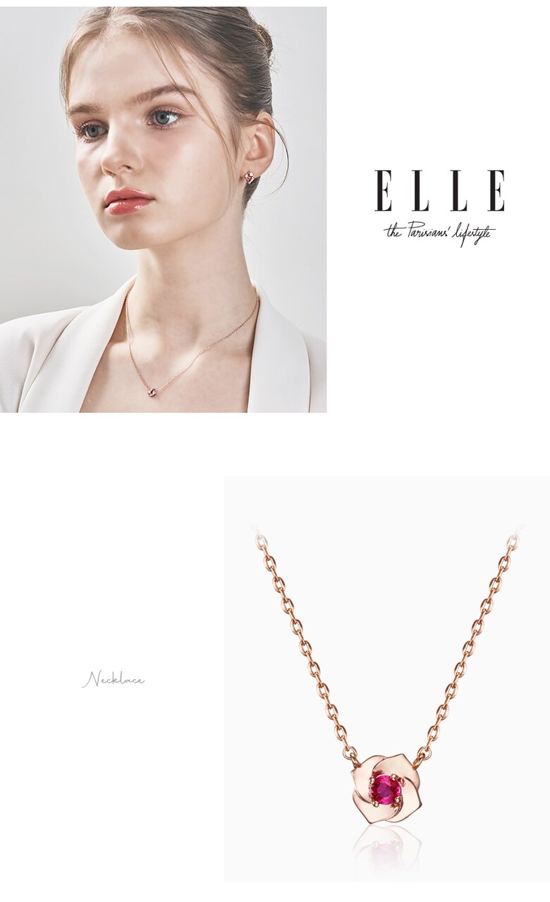 14K GP 루비 플라워 심플 목걸이 ELBRNN222