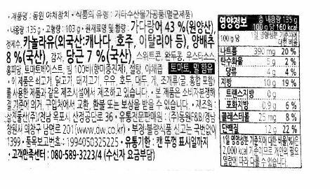 | 5. 포장단위별 내용물의 용량(중량), 수량 | 135g * 10캔 |