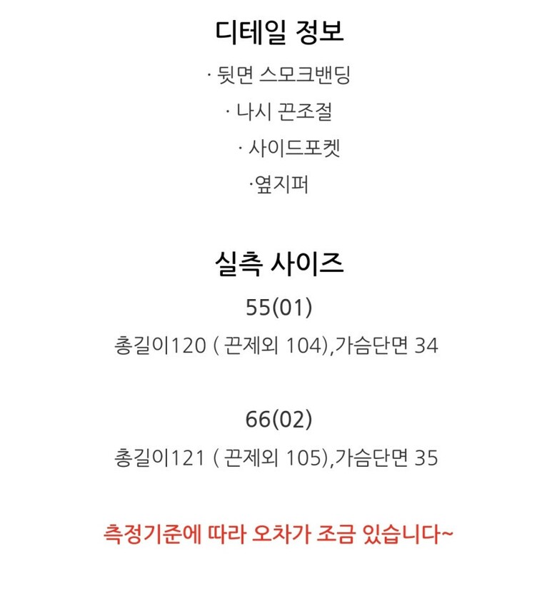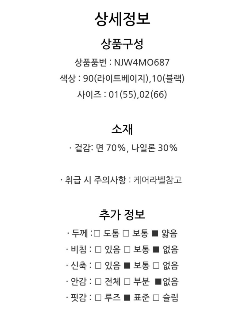 | 6. 세탁방법 및 취급시 주의사항 | 상품상세참조 |