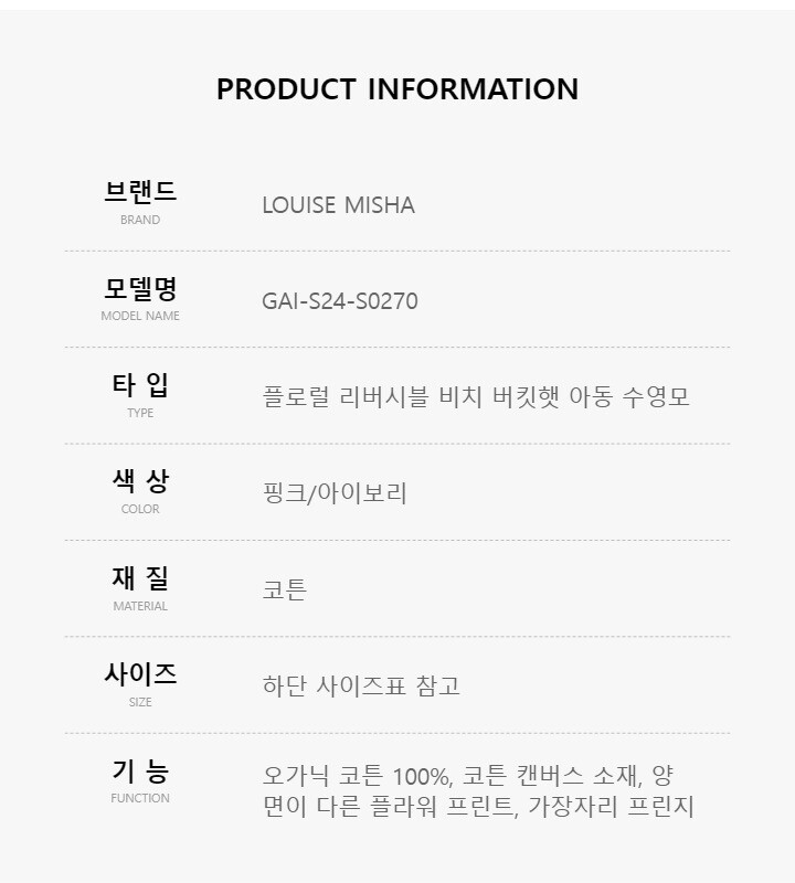 루이스미샤 GAI-S24-S0270 (Lajik) 플로럴 리버시블 비치 버킷햇 아동 수영모