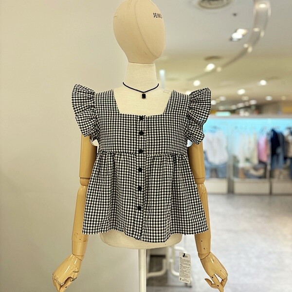 JO8BL1001B_미니블랙체크블라우스