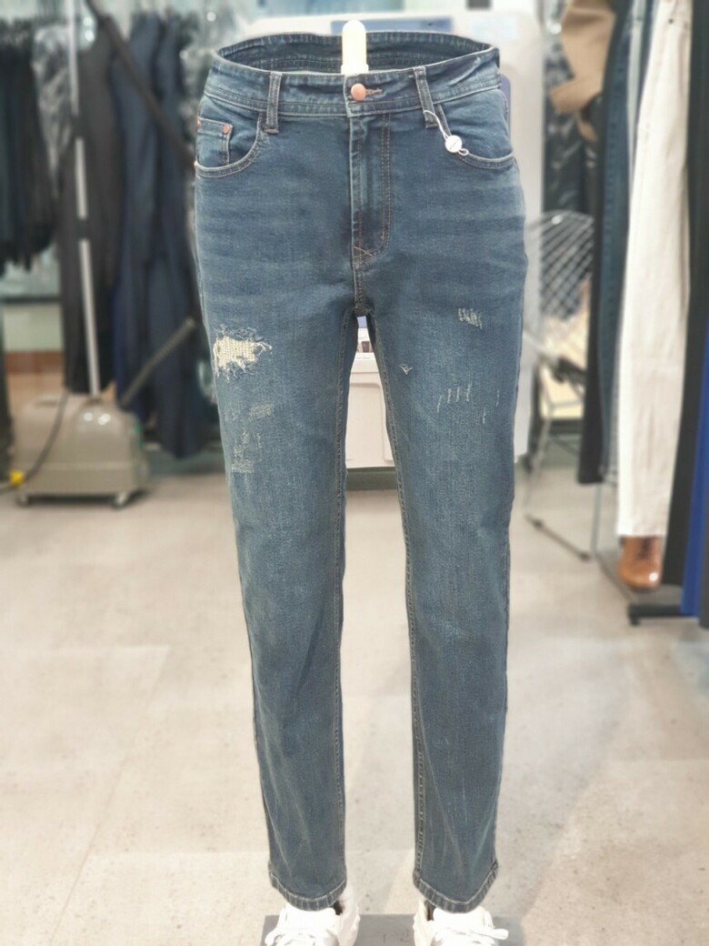 BON 23FW 블루 디스트로이 스탠다드 데님 청 바지 BN3WTA390BL