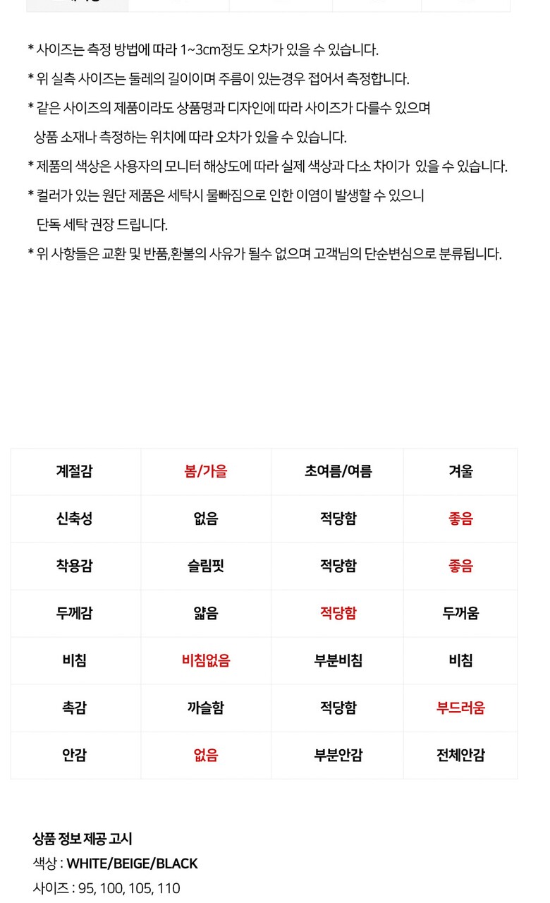 1. 제품 소재 (섬유의 조성 또는 혼용률을 백분율로 표시, 기능성인 경우 성적서 또는 허가서) 상품 이미지 참조