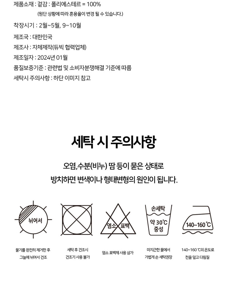 6. 세탁방법 및 취급시 주의사항 상품 이미지 참조