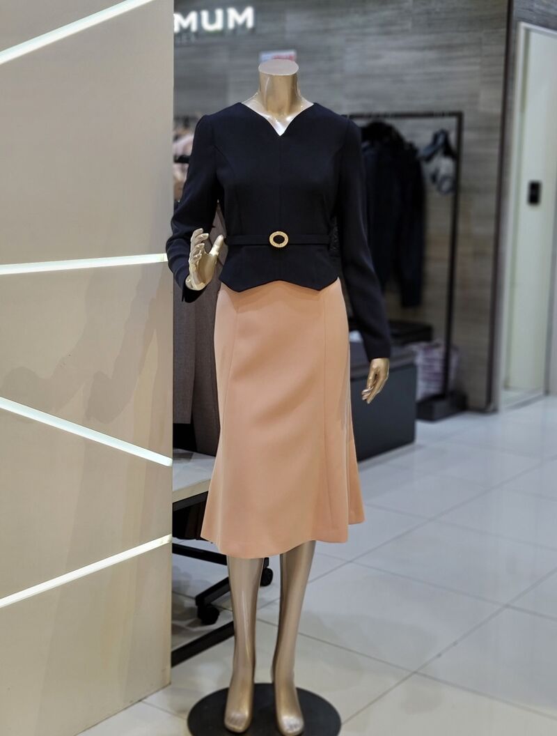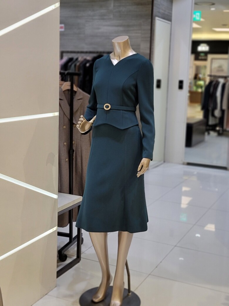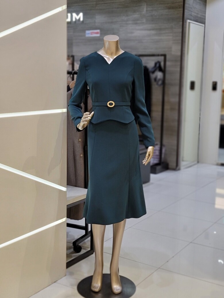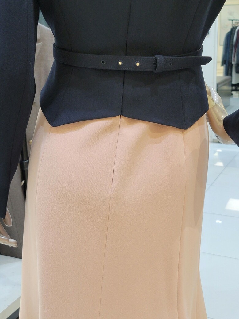 바디라인에 피팅 되어 맵시 있는 실루엣과 페플럼 디테일로