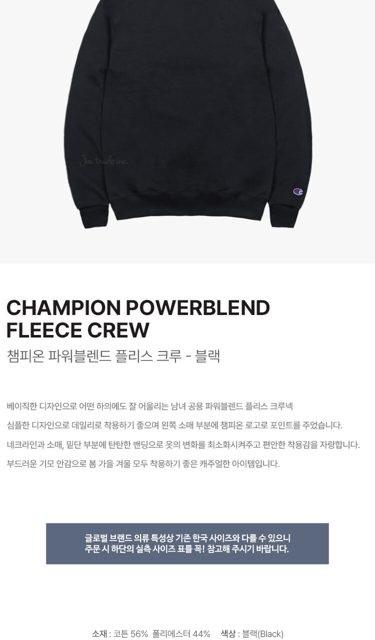 [챔피온] 파워블렌드 플리스 크루넥 맨투맨 S600 블랙