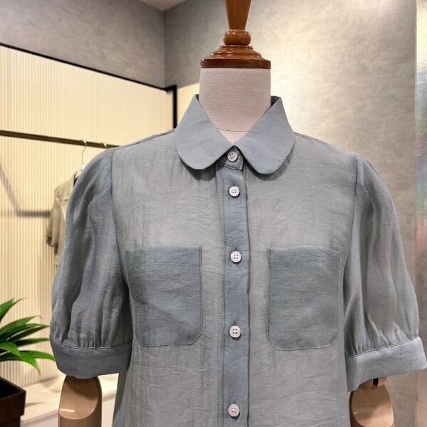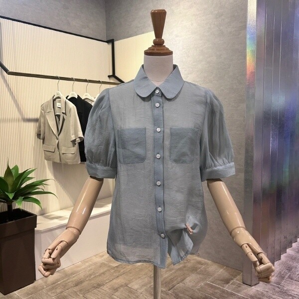 2024년 s/s 신상?라운드 카라 포켓 블라우스 입니다.