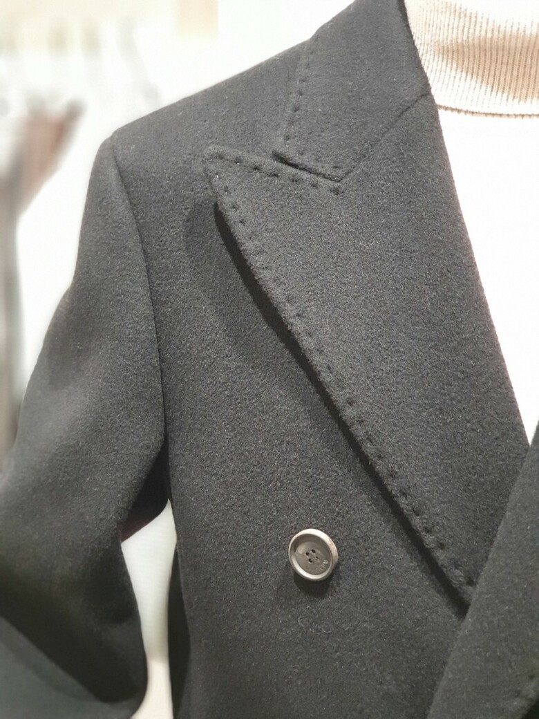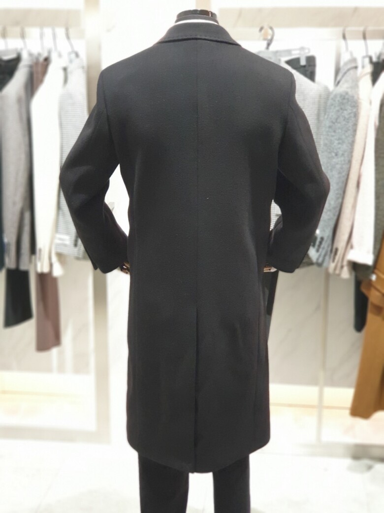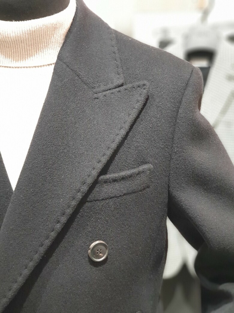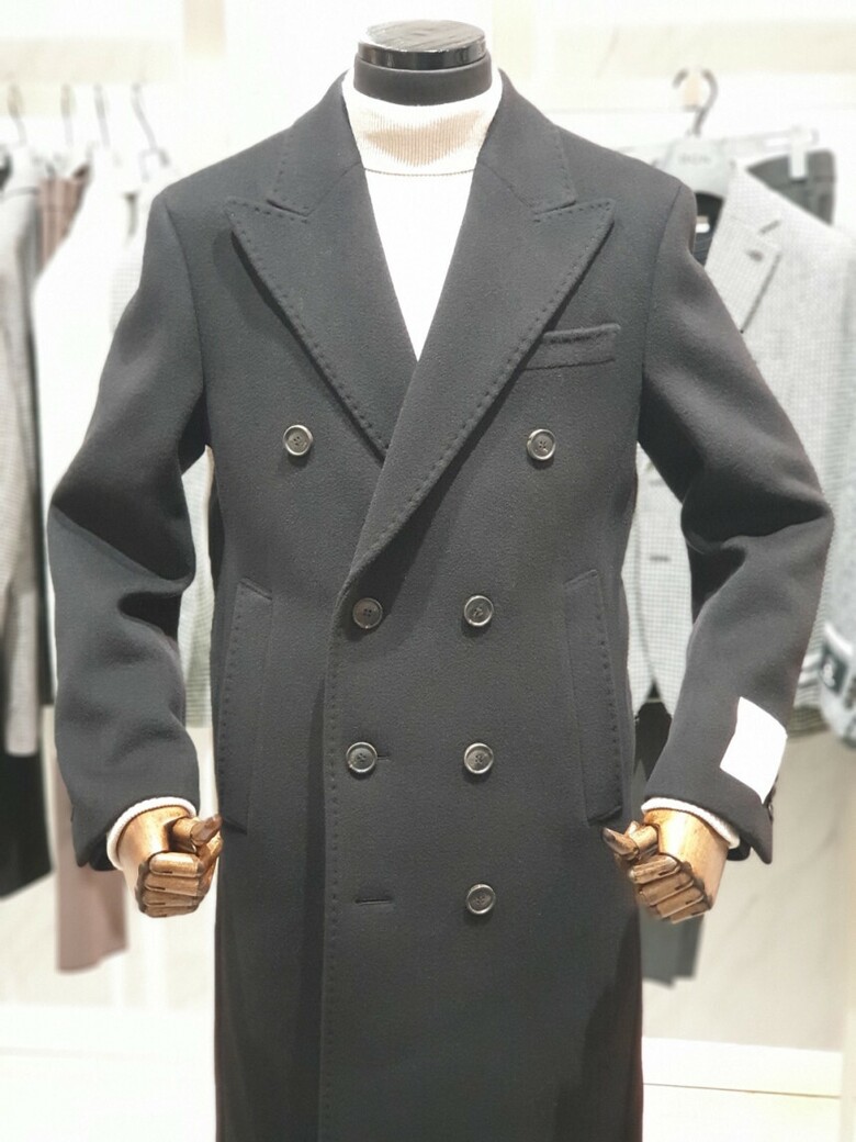 BON 23FW 블랙 스테디셀러 캐시미어 롱 더블 피크드 코트 BN3WHA591BK