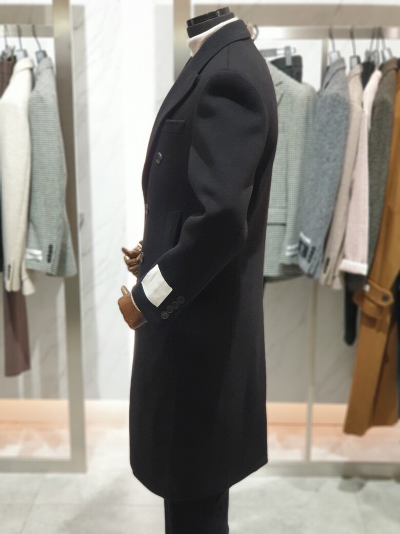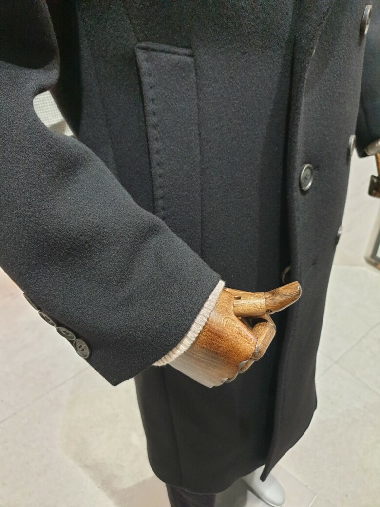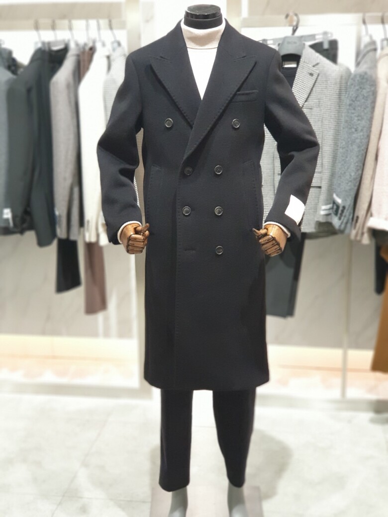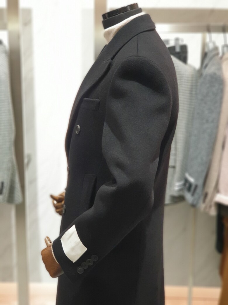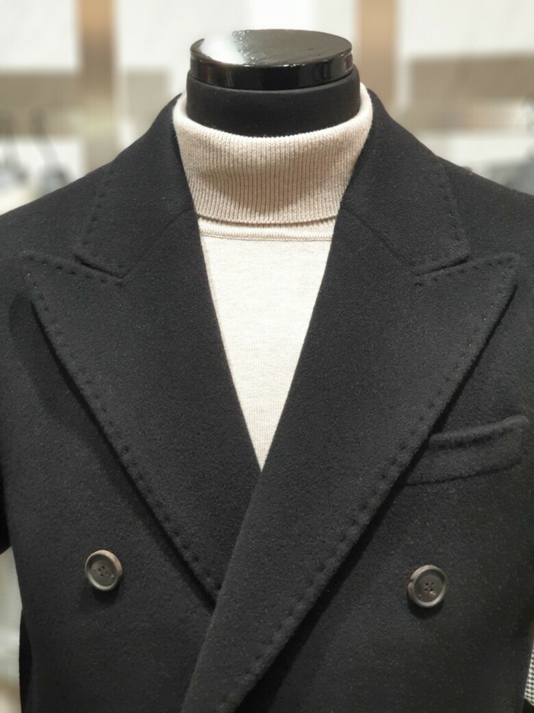 BON 23FW 블랙 스테디셀러 캐시미어 롱 더블 피크드 코트 BN3WHA591BK