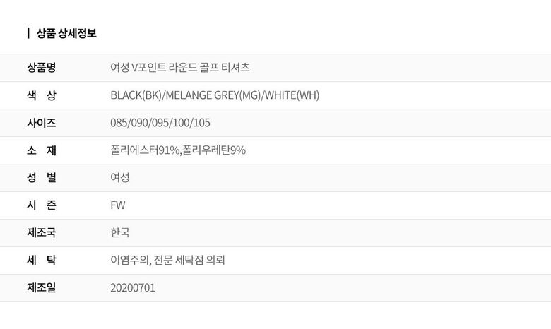 | 2. 색상 | 색상:BLACK(BK)/MELANGE GREY(MG)/WHITE(WH) |
