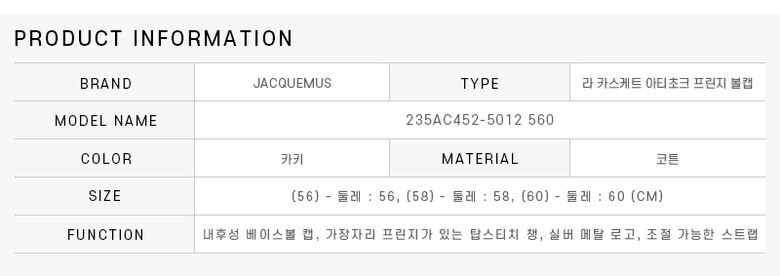 자크뮈스 235AC452-5012 560 라 카스케트 아티초크 프린지 공용 볼캡 모자