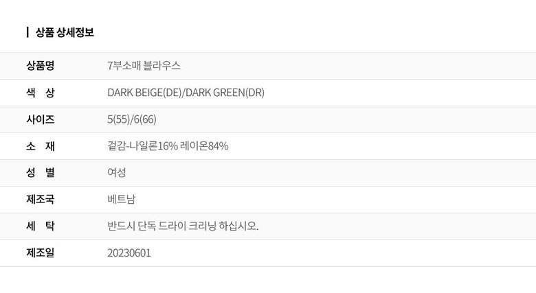 | 6. 세탁방법 및 취급시 주의사항 | 상세페이지 참조 |