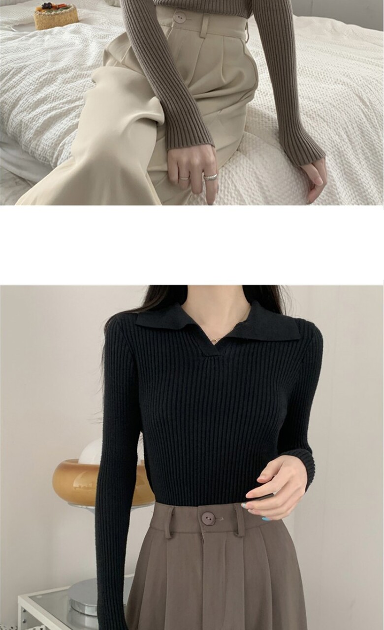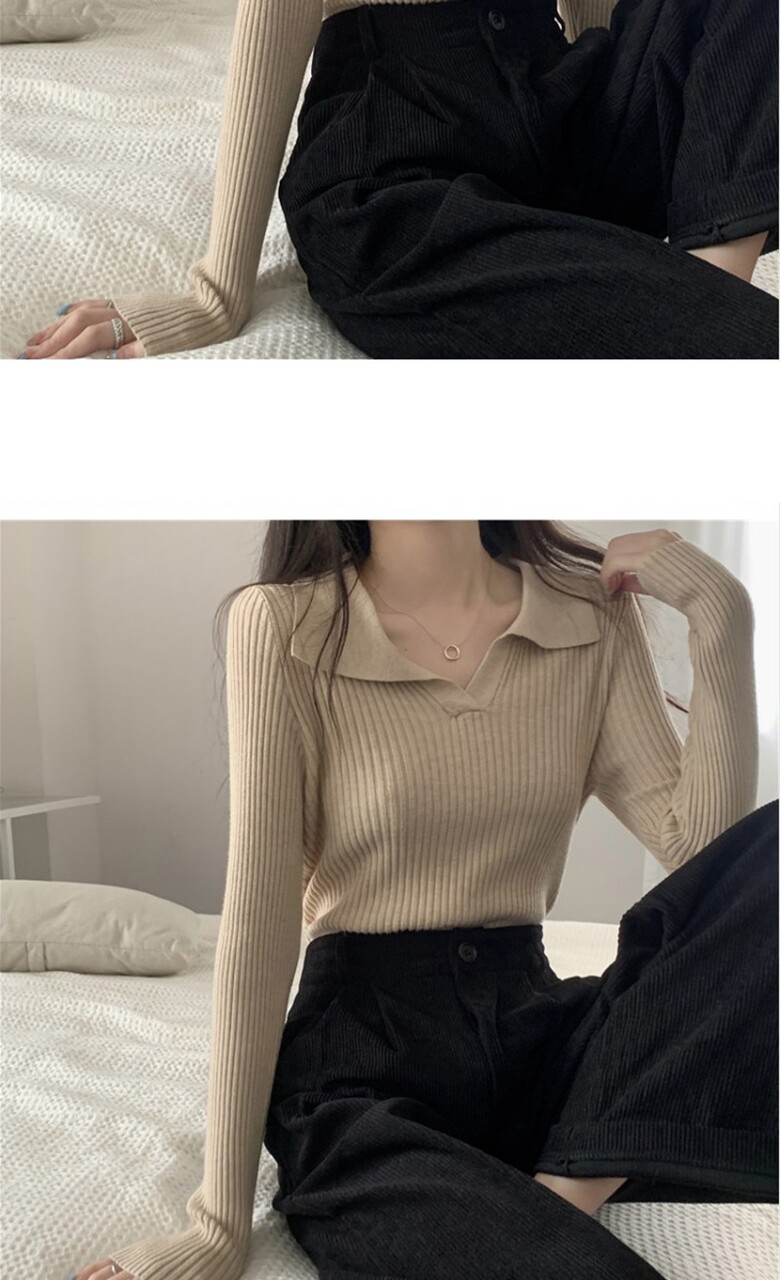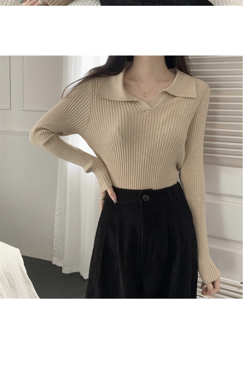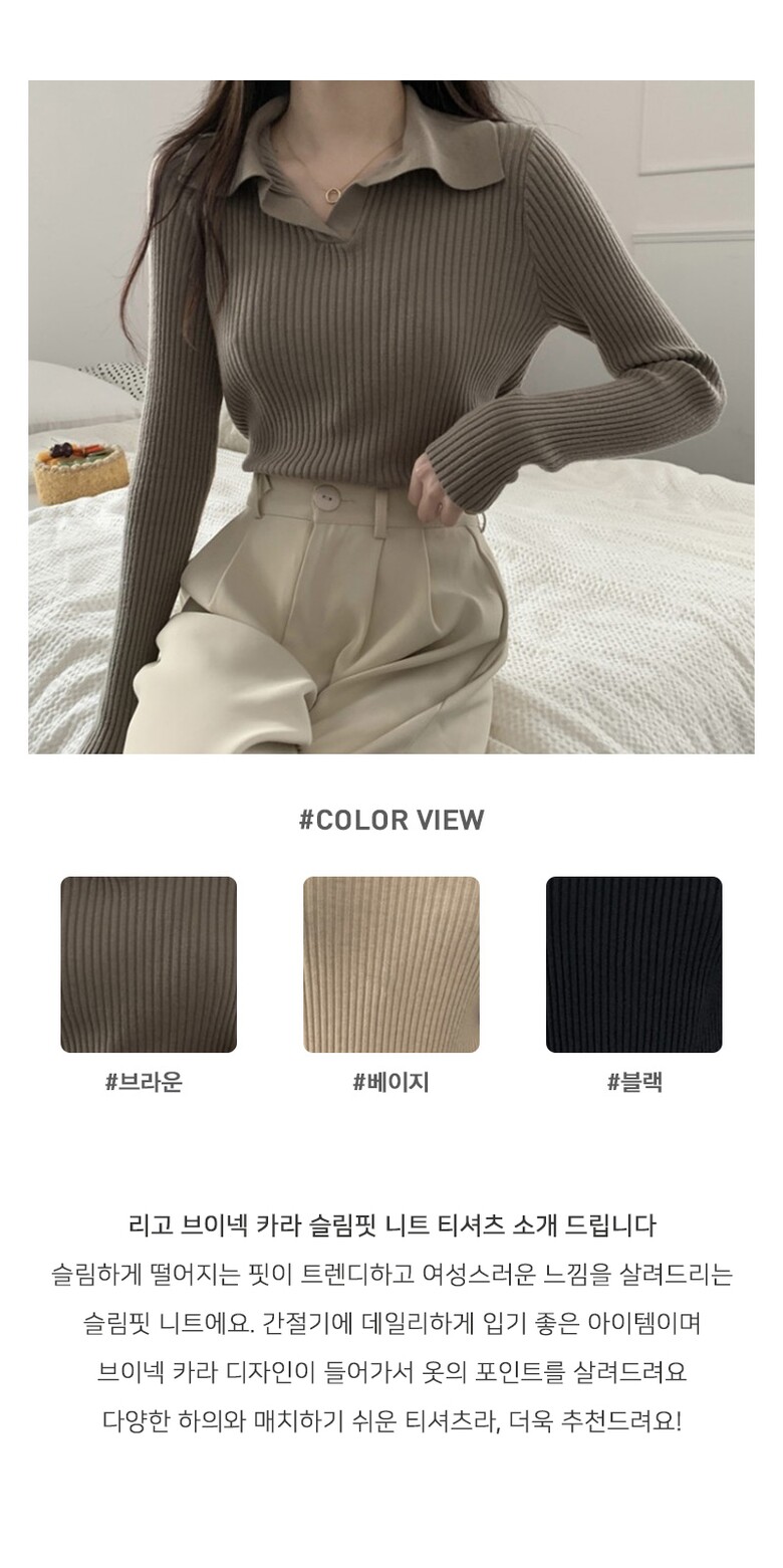 리고 브이넥 카라 슬림핏 니트 티셔츠