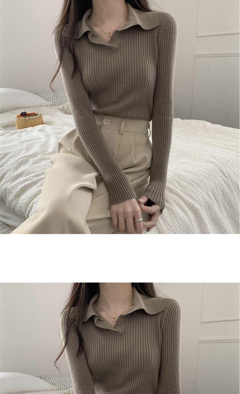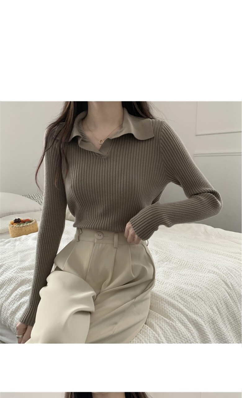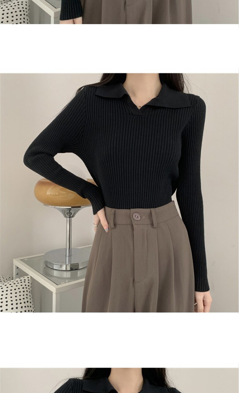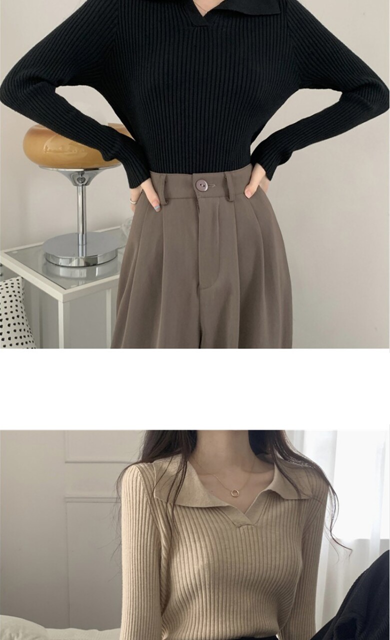 리고 브이넥 카라 슬림핏 니트 티셔츠
