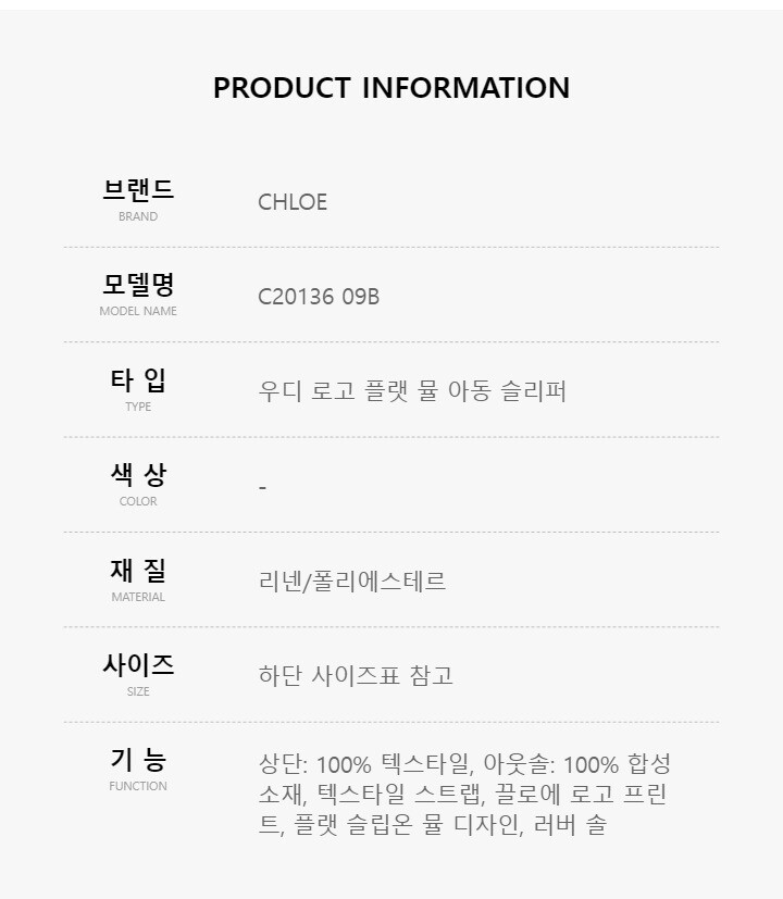 | 1. 제품 소재 (운동화인 경우에는 겉감, 안감을 구분하여 표시) | 상세페이지 참조 |