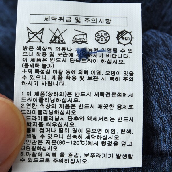 세탁방법 및 취급시 주의사항 : 드라이크리닝