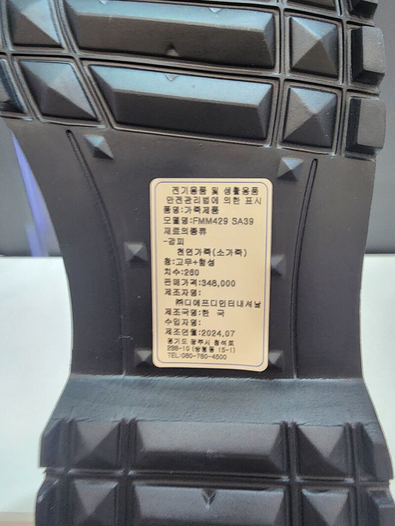 | 1. 제품 소재 (운동화인 경우에는 겉감, 안감을 구분하여 표시) | 소가죽 |
