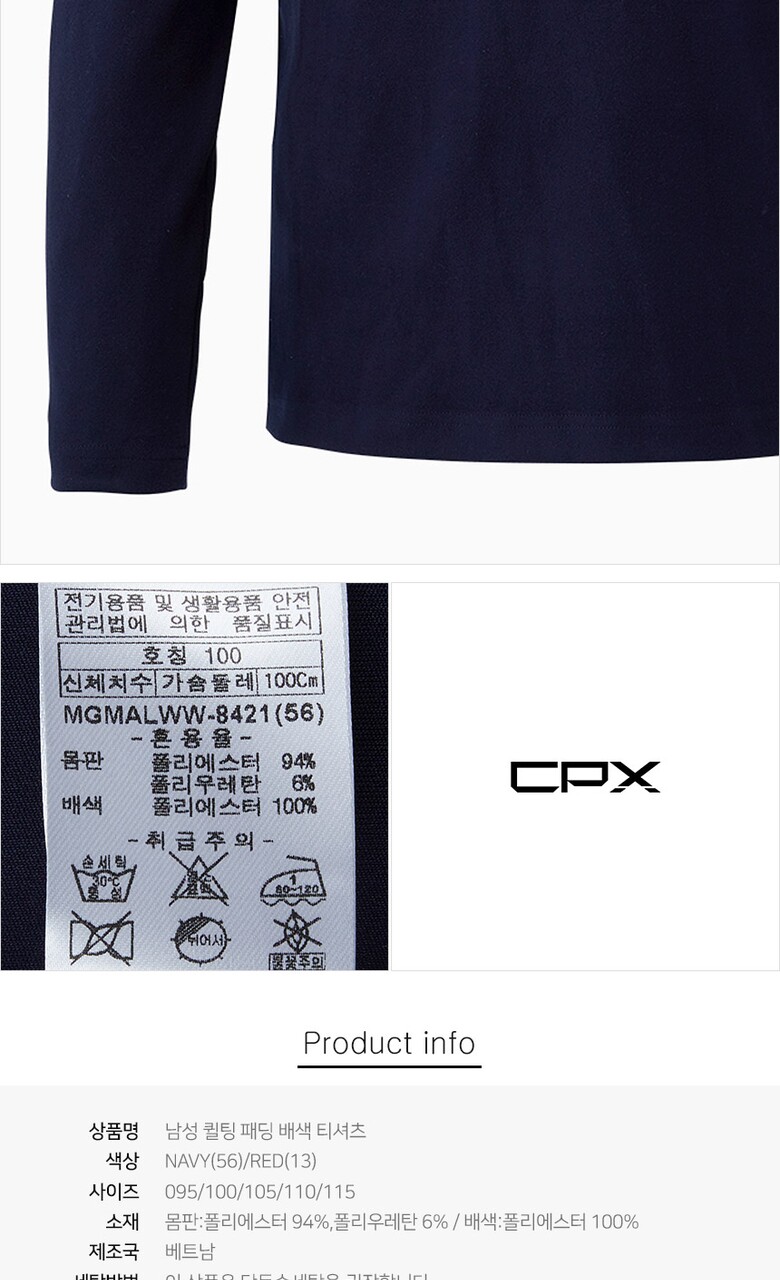 [CPX] 남성 퀼팅 패딩 배색 티셔츠_MGMALWW8421