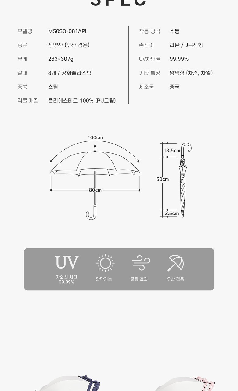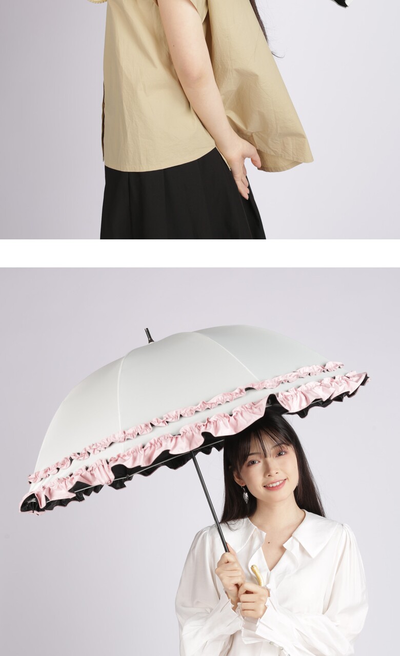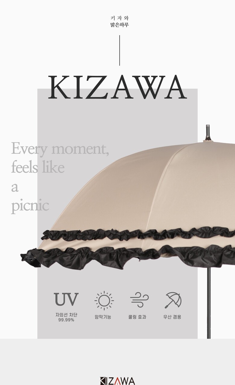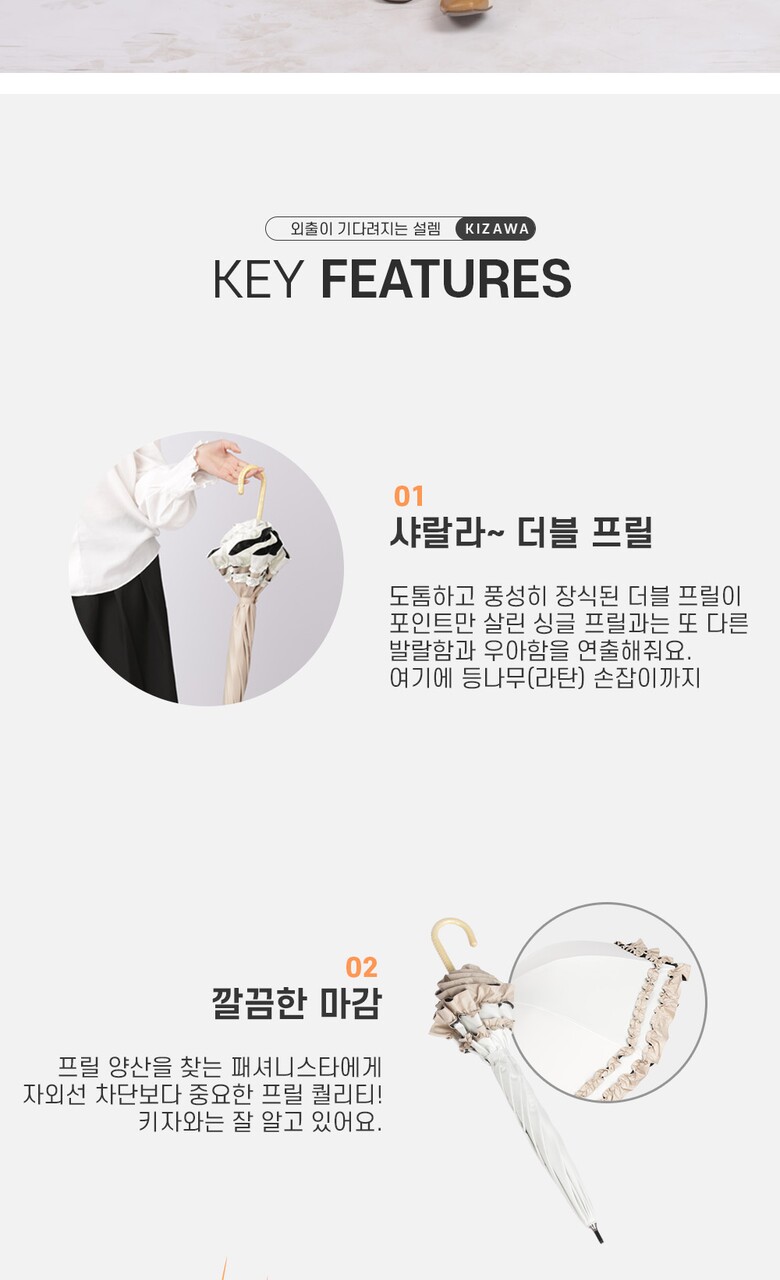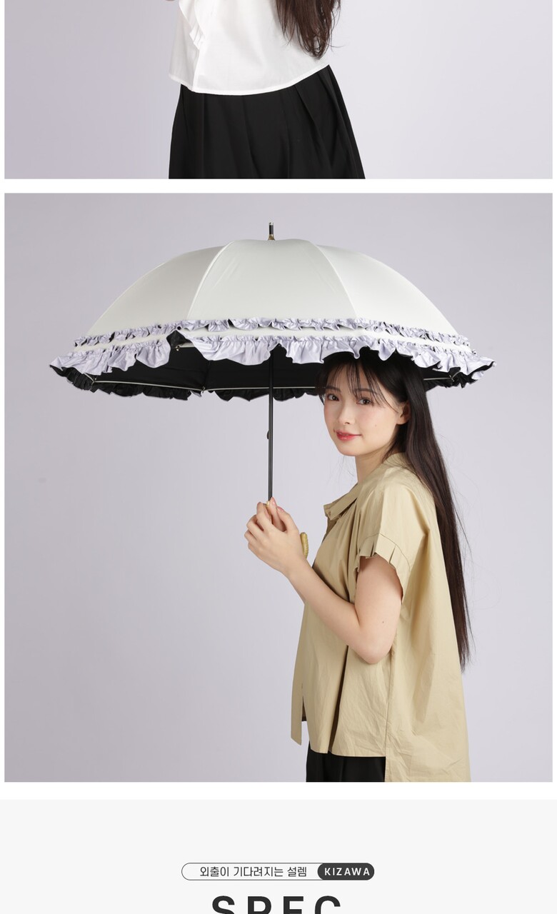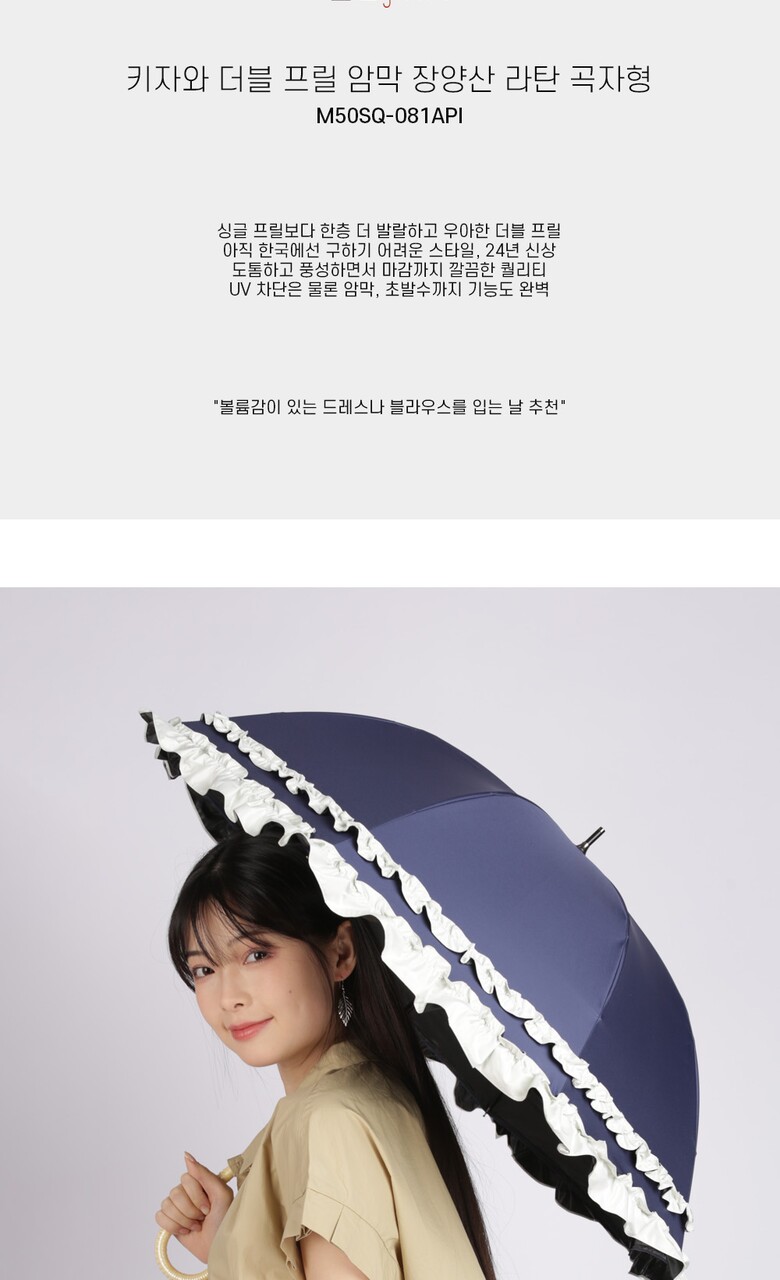 키자와 더블 프릴 암막 장양산 라탄 곡자형 M50SQ-081API