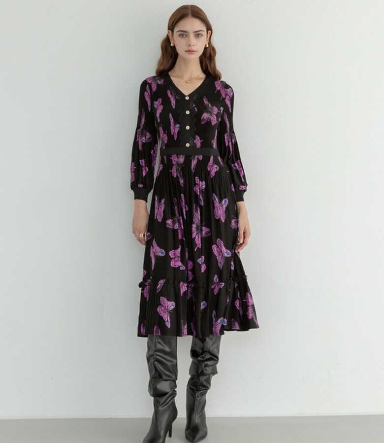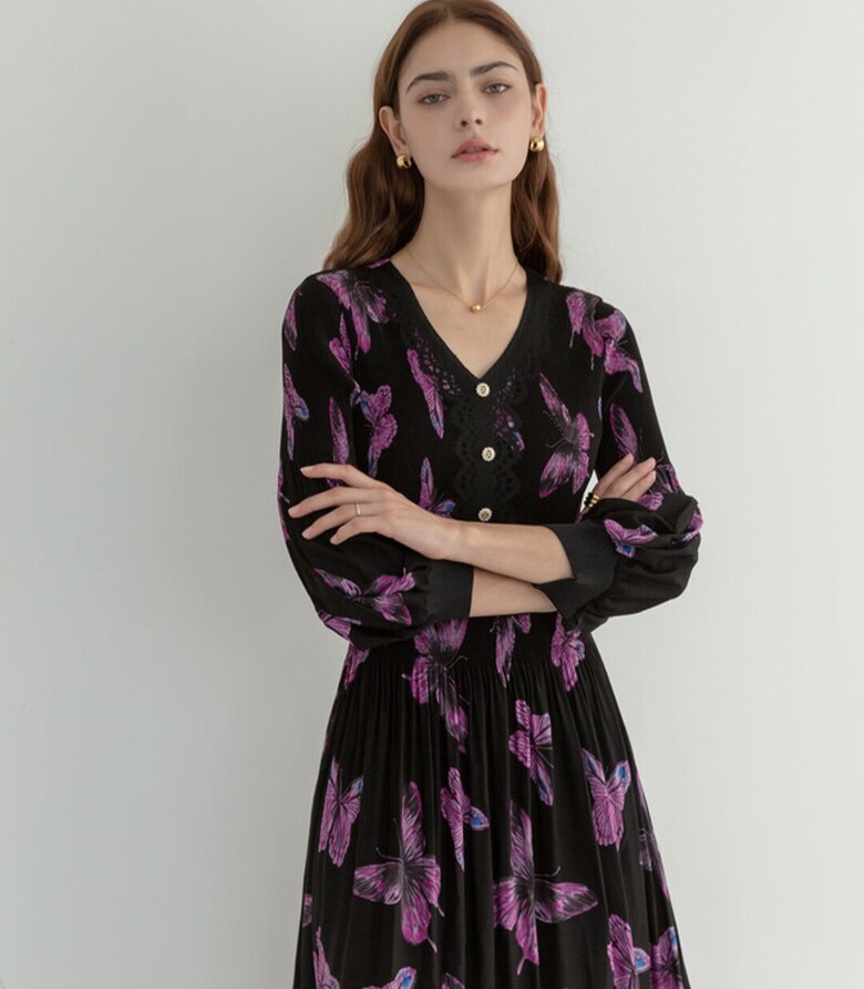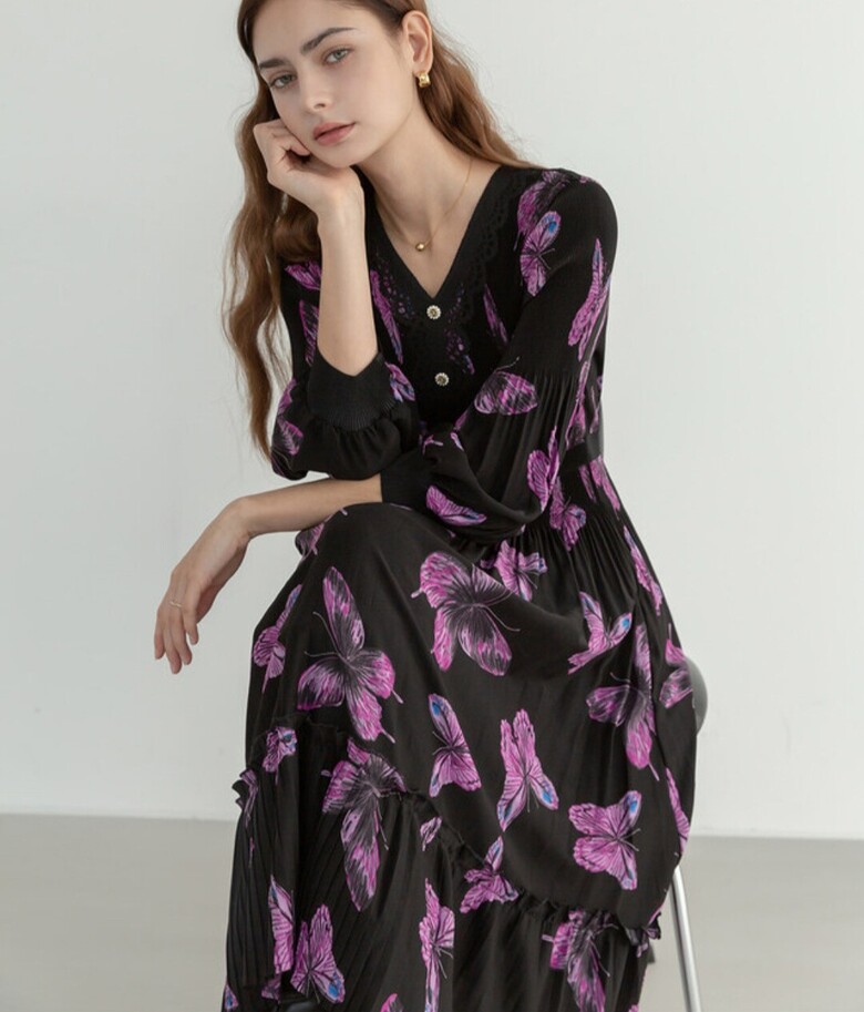 르니앤 맥코이 잔잔바이올렛 플리츠 브이넥 원피스ML10OP771