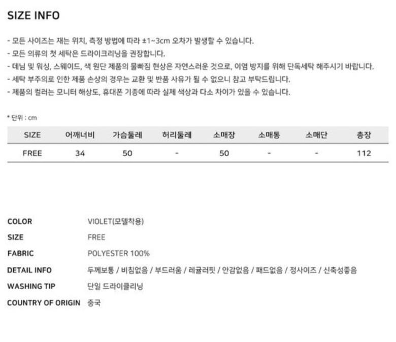 | 6. 세탁방법 및 취급시 주의사항 | 상품상세참조 |